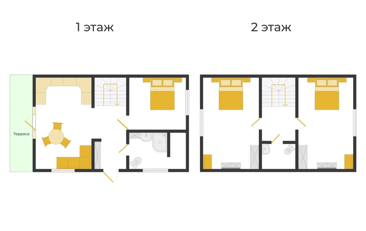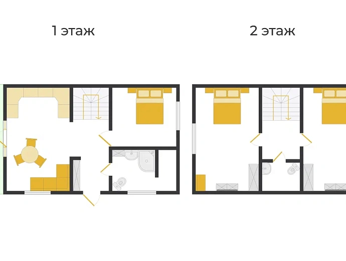 На 1 этаже располагается кухня-гостиная, изолированная спальная комната и санузел.